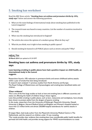 If you smoke, you hurt your lungs and heart each time you light up. 2014 national curriculum resources » science » upper key stage 2 » year 6 » animals, including humans » recognise the impact of diet, exercise, drugs and. Taste and smell improves skin improves fitness improves lungs begin to repair themselves and start getting rid of all the gunk that has been clogging them up they have lots more money they can stay inside with their friends and family instead of being outside, alone, smoking; The nicotine and other poisonous chemicals in tobacco cause lots of diseases, like heart problems and some kinds of cancer.